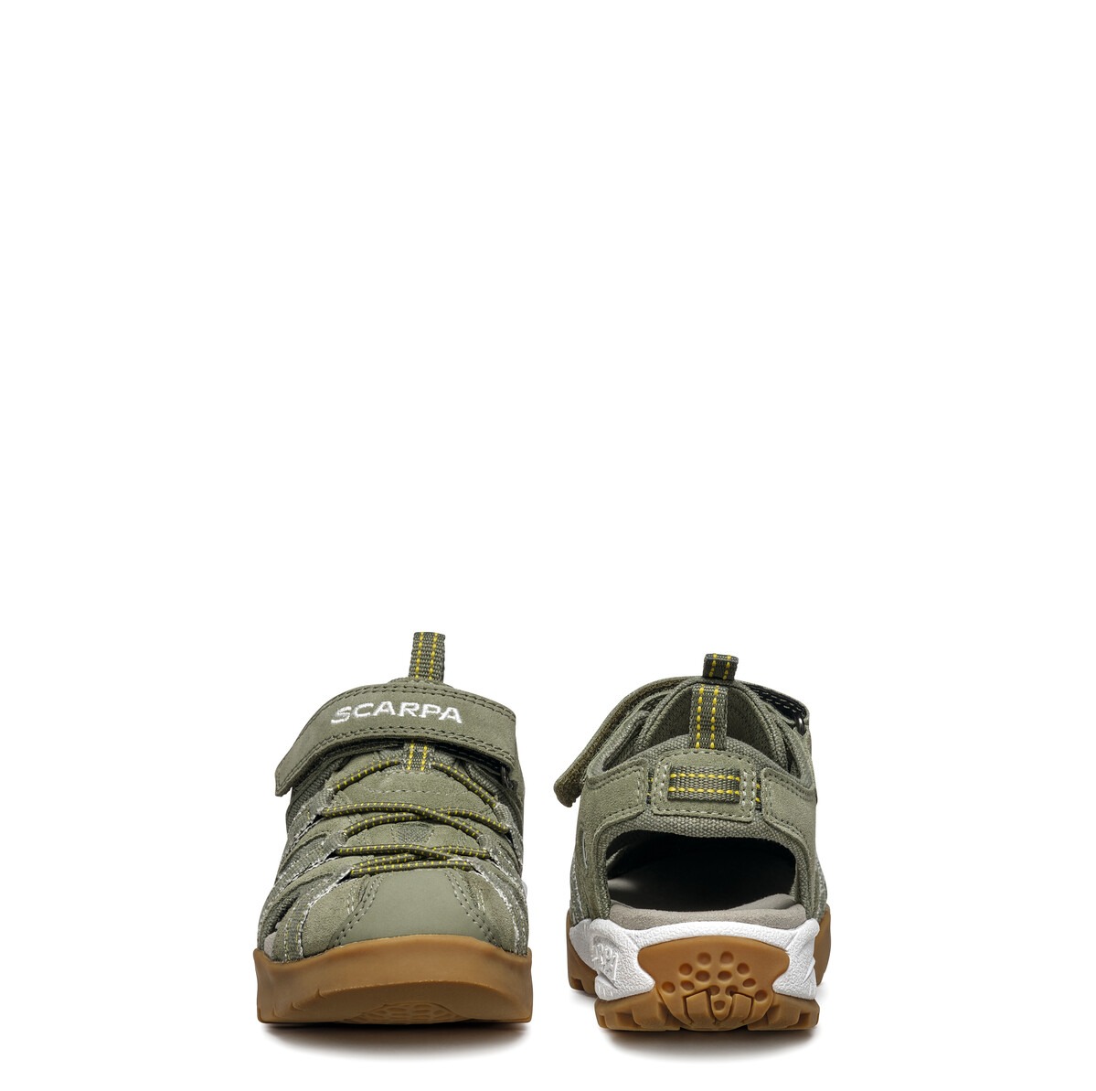 Sandale sport copii Scarpa Mojito – alegerea perfecta pentru micii exploratori care adora sa descopere natura. Designul inspirat din bestseller-ul Scarpa Mojito combina confortul si protectia cu un stil modern si adaptabil. Partea superioara din piele intoarsa rezistenta la apa si material textil asigura respirabilitate si confort sporit chiar si pe trasee solicitante. Protectia integrata la varf ofera siguranta suplimentara impotriva pietrelor si obstacolelor de pe traseu. Talpa interioara anatomica sprijina piciorul in mod natural, oferind stabilitate si confort pe tot parcursul aventurii. Fie ca sunt folosite pentru plimbari usoare, drumetii montane sau explorari urbane, Scarpa Mojito Kid – sandale piele copii – sunt alegerea ideala pentru orice activitate in aer liber. Sistemul de inchidere cu curele reglabile permite o potrivire personalizata, oferind suport optim in timpul miscarii. Designul ergonomic si materialele premium garanteaza o potrivire perfecta si o senzatie naturala la fiecare pas. Aceste sandale outdoor copii sunt alegerea ideala pentru orice aventura.